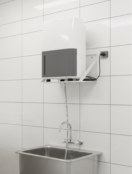 - Kondenspumpe: die Kondenspumpe wird direkt in den Tank der Entfeuchtungsgeräte gesetzt und mittles Saugnäpgen am Tankboden fixiert. Mit einer Pumpe kann der Kondensattank nach oben entleert werden (in einen erhöhten Abfluss, nach außen durch ein Fenster usw.). Die Größe der Pumpe hängt von der Höhe ab, in die das Wasser gepumpt werden muss.