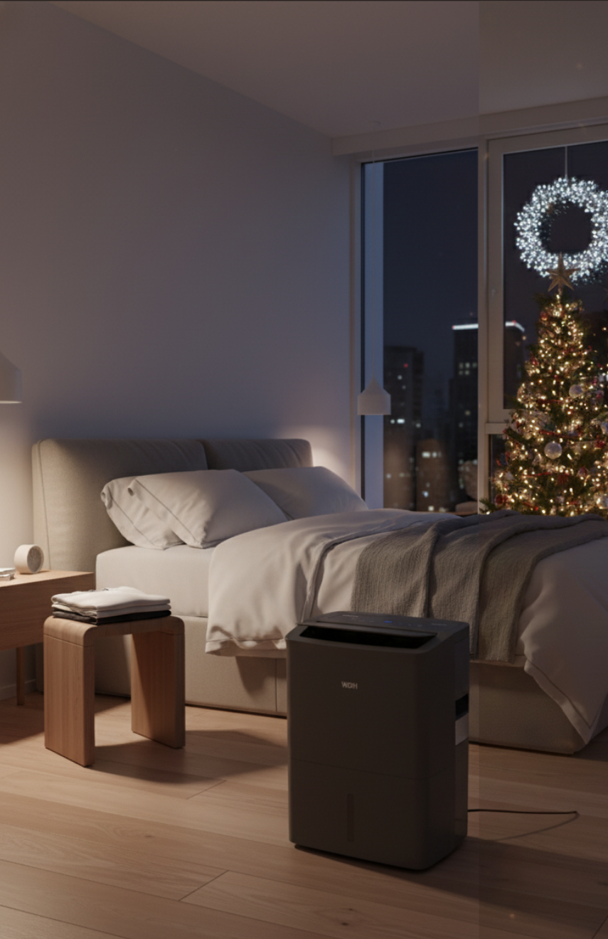 In diesen Fällen kann ein leiser Luftentfeuchter, wie unser WDH-214US, sinnvoll sein. Er hilft, die Luftfeuchtigkeit konstant zu senken, ohne den Schlaf zu stören, und reduziert so Kondenswasser an Fenstern sowie das Risiko von Schimmelbildung.