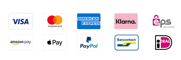 In Zusammenarbeit mit Klarna Bank AB (publ), Sveavägen 46, 111 34 Stockholm, Schweden, bieten wir die folgenden Zahlungsoptionen an. Die Zahlung erfolgt jeweils an Klarna: